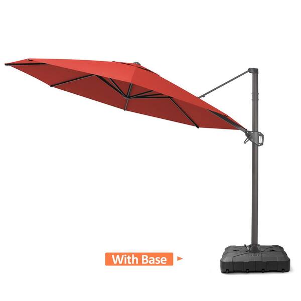11.5 ft. Octagon Aluminium 360° Rotation Offset Outdoor Cantilever Patio Umbrella in Red with Fillable Base