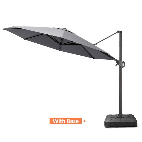 11 ft. Octagon Aluminium 360° Rotation Offset Outdoor Cantilever Patio Umbrella in Dark Gray with Fillable Base