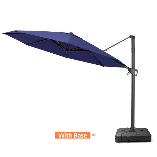 11 ft. Octagon Aluminium 360° Rotation Offset Outdoor Cantilever Patio Umbrella in Navy Blue with Fillable Base