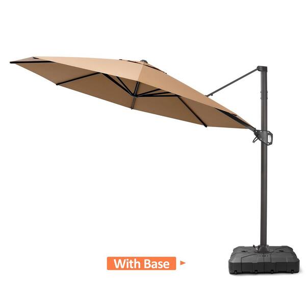 11 ft. Octagon Aluminium 360° Rotation Offset Outdoor Cantilever Patio Umbrella in Tan with Fillable Base