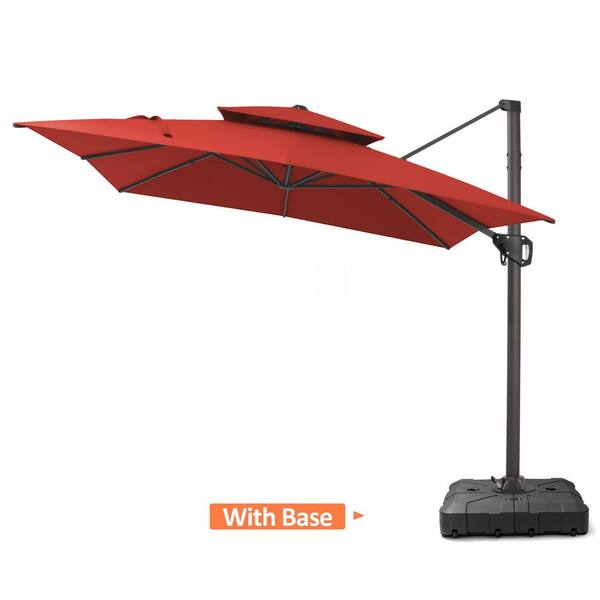 11 ft. x 9 ft. Aluminum Dual-Top 360° Rotation Offset Outdoor Cantilever Patio Umbrella in Red with Fillable Base