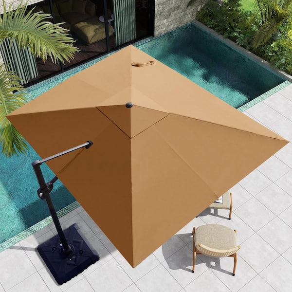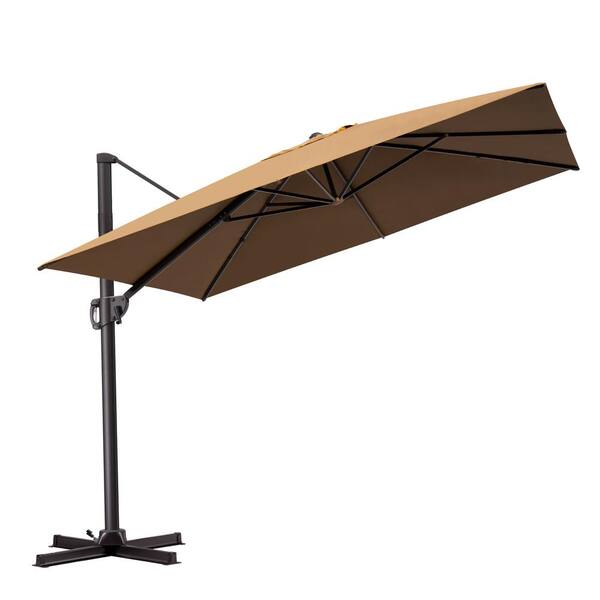 11 ft. x 9 ft. Rectangular Aluminum Heavy-Duty 360° Rotation Cantilever Patio Umbrella in Light Tan