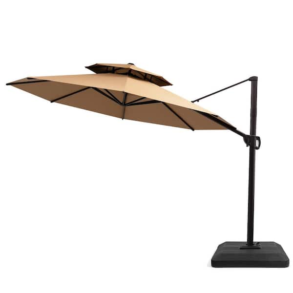 12 ft. Aluminum Cantilever Offset Outdoor Large Parasol Patio Umbrella in Tan with Base Included