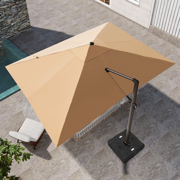 13 ft. x 10 ft. Aluminum Cantilever Offset Tilt Rotation Patio Umbrella in Tan, Base Stand Weights Included