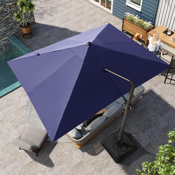 13 ft. x 10 ft. Rectangular Aluminum Heavy-Duty 360° Rotation Cantilever Patio Umbrella in Navy Blue