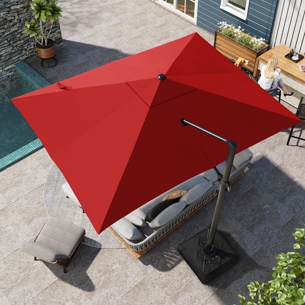 13 ft. x 10 ft. Rectangular Aluminum Heavy-Duty 360° Rotation Cantilever Patio Umbrella in Red with No Base