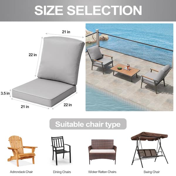 21 in. x 22 in. Deep Seating Outdoor Lounge Chair Cushion in Light Gray
