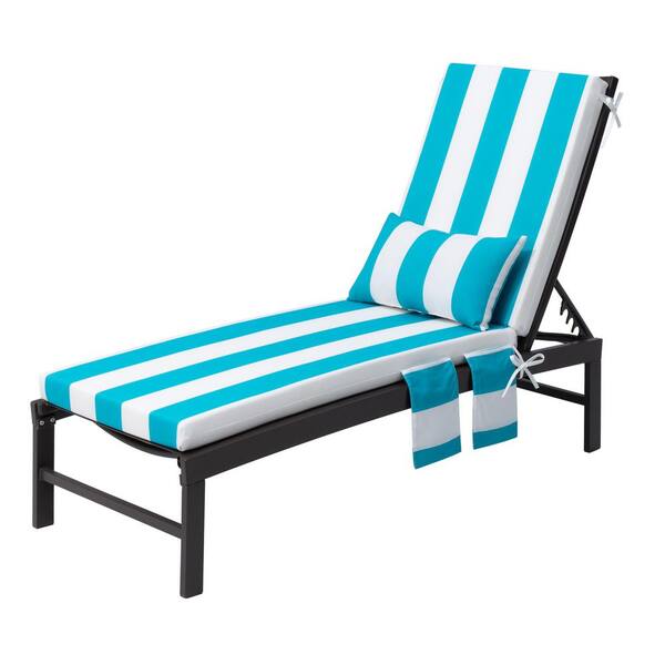 21 in. x 28 in. 1-Piece Deep Seating Outdoor Chaise Lounge Chair Cushion in Blue & White Stripe