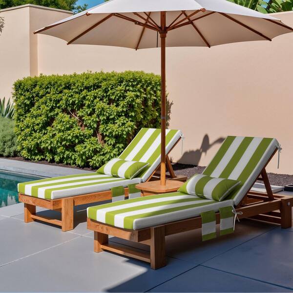 21 in. x 28 in. 2-Piece Deep Seating Outdoor Chaise Lounge Chair Cushion in Green & White Stripe