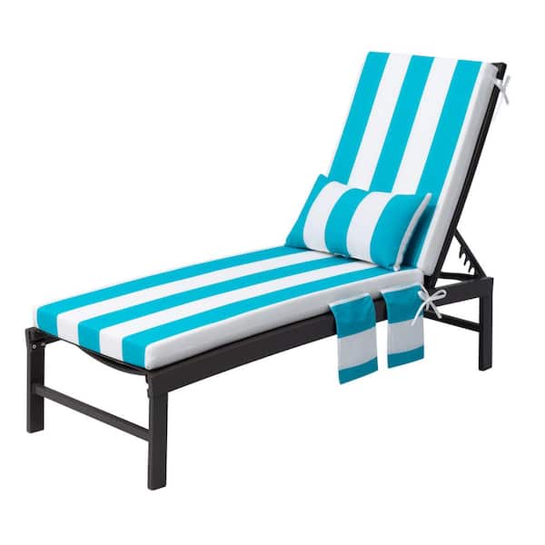 23 in. x 30 in. 1-Piece Deep Seating Patio Outdoor Chaise Lounge Chair Cushion in Blue & White Stripe