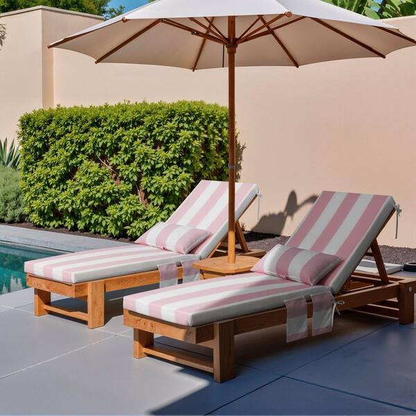 23 in. x 30 in. 2-Piece Deep Seating Patio Outdoor Chaise Lounge Chair Cushion in Pink & White Stripe