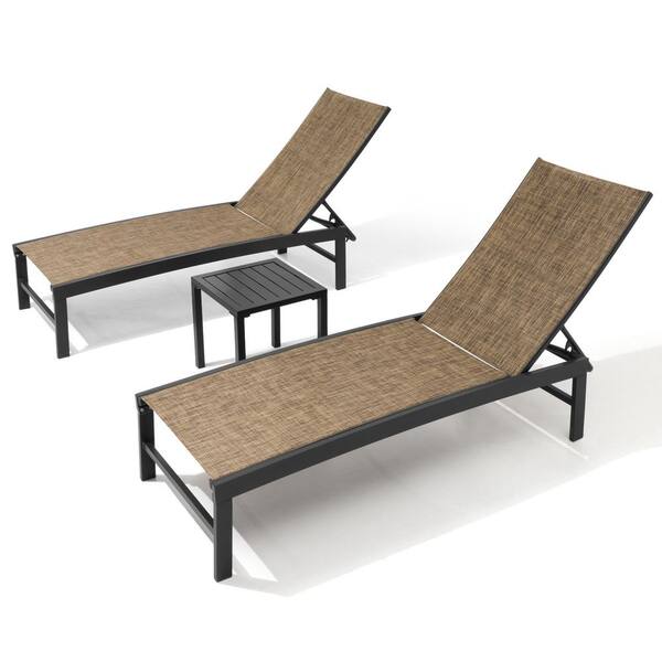3-Piece Adjustable Aluminum Outdoor Chaise Lounge in Gray with Aluminum Table Set