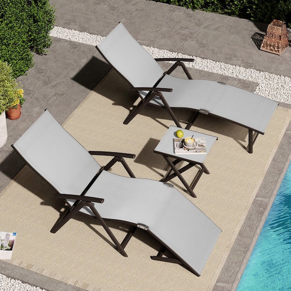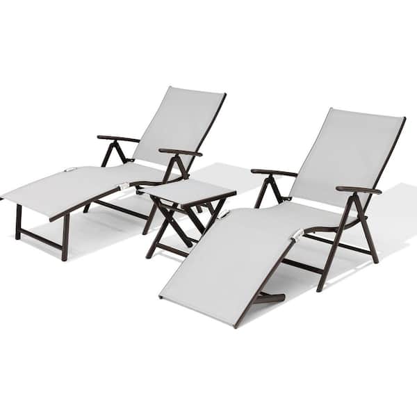 3-Piece Adjustable Aluminum Outdoor Chaise Lounge in Light Gray with Side Table