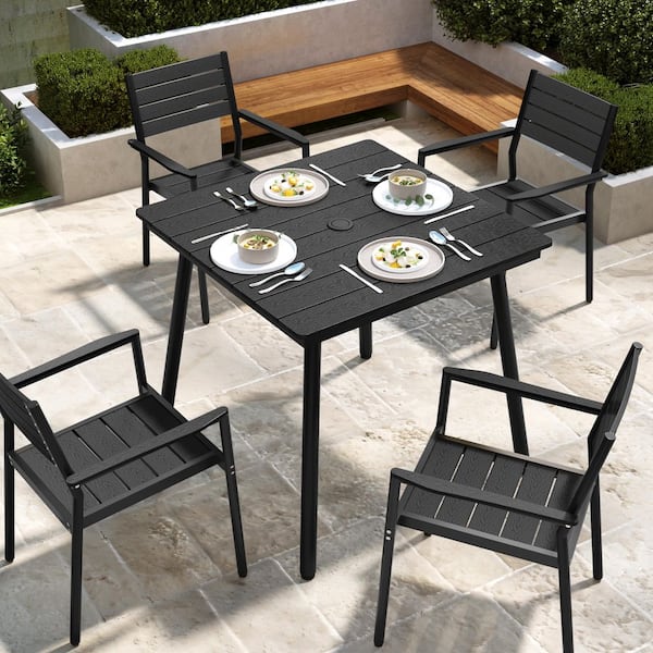 31.3 in. Square Aluminum Outdoor Patio Dining Table with Wood-Like Tabletop in Black