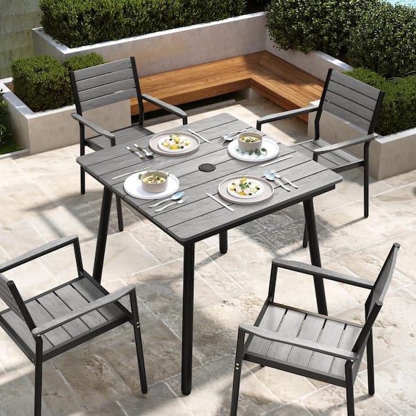 31.3 in. Square Aluminum Outdoor Patio Dining Table with Wood-Like Tabletop in Gray