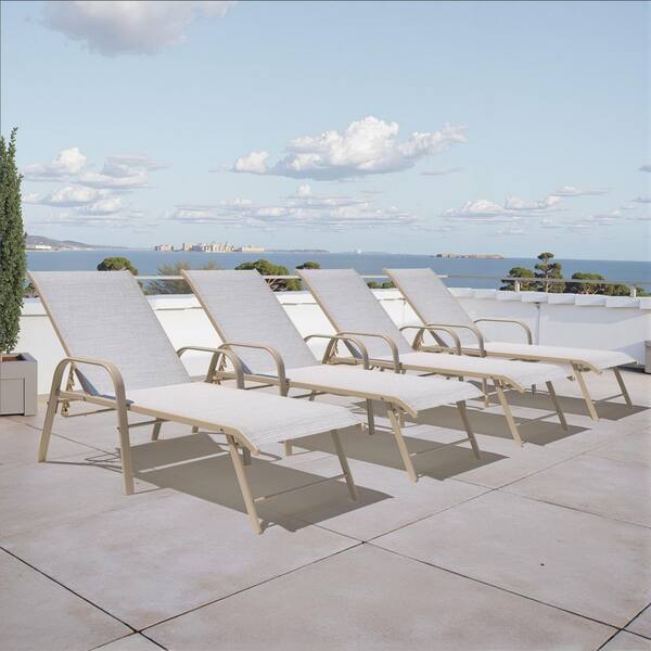 4-Piece Aluminum Metal Patio Outdoor Chaise Lounge Chairs in White and Gray and Blue Mixed Color with Adjustable Back