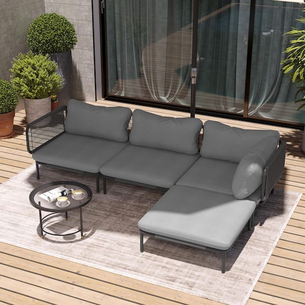 4 Piece Metal Outdoor Sectional Sofa with Dark Gray Cushions 8-Armrest