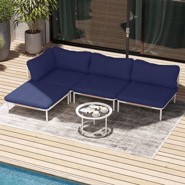4 Piece Metal Outdoor Sectional Sofa with Navy Blue Cushions 4-Armrest