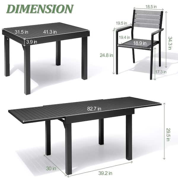 5-Piece Gray Aluminum Patio Outdoor Dining Set with Extension Rectangular Table and Wood-Like Stacking Arms Chairs