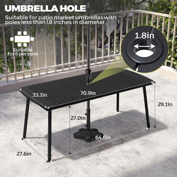 7-Piece 70.9 in. Black Aluminum Patio Outdoor Dining Set, Rectangle Table with Umbrella Hole and Stacking Chairs