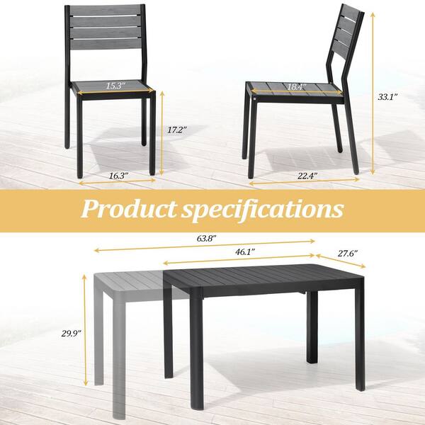7-Piece Aluminum Patio Outdoor Dining Set Rectangle Extendable Table and Armless Stacking Wood-Like Chairs, Gray