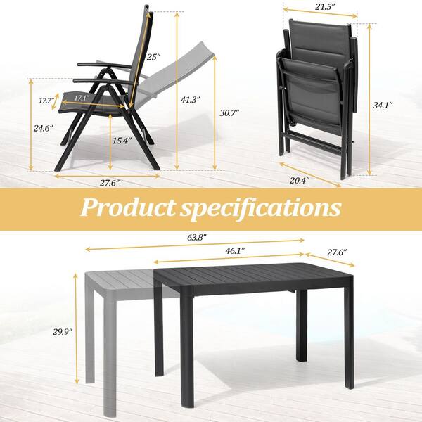 7 Pieces Aluminum Rectangular Outdoor Patio Dining Set with Expandable Table and Adjustable Folding Chairs in Gray