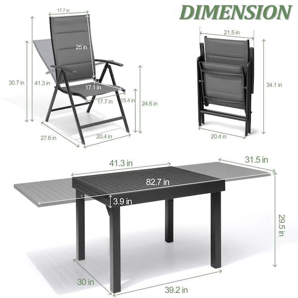 7 Pieces Gray Aluminum Outdoor Patio Dining Set with Extendable Table and Adjustable Folding Chairs
