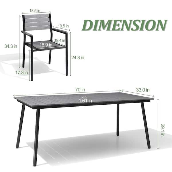 70 in. Gray Aluminum Wood-Like Outdoor Dining Set with Umbrella Hole and Stackable Armchairs (9 Pieces)