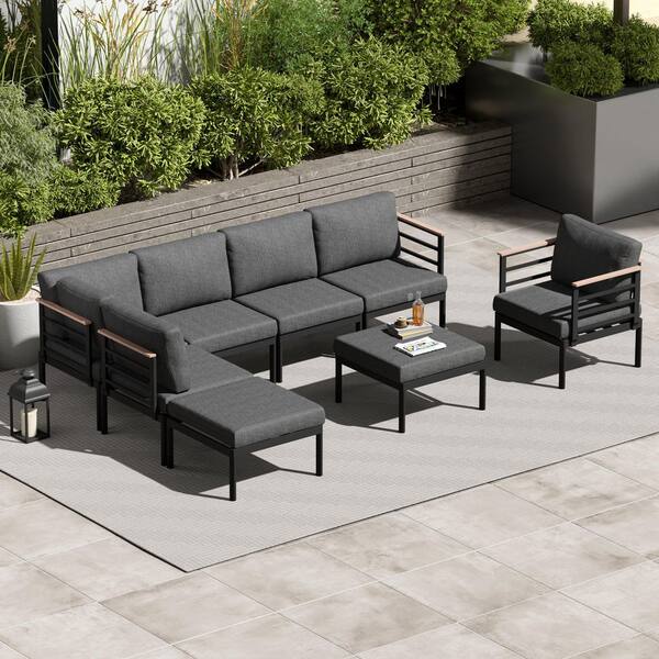 8-Piece Aluminum Leisure Outdoor Day Bed Sofa with Dark Gray Cushions