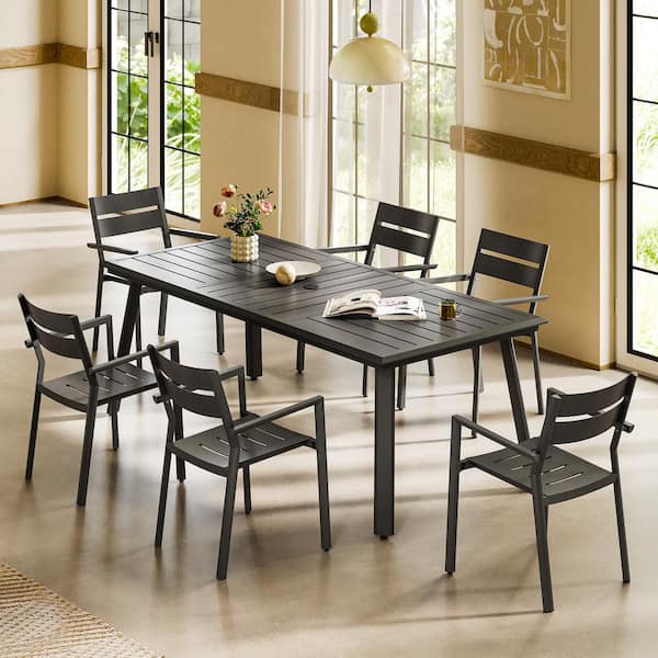 82.7 in. Patio Aluminum Black Outdoor Dining Table with Umbrella Hole