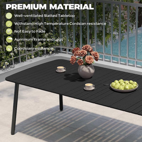 9-Piece Metal Aluminum Rectangular Patio Outdoor Dining Set with Stackable Arm Dining Chairs and Umbrella Hole, Black