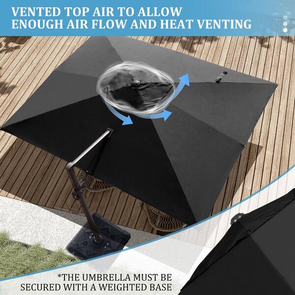 9 ft. x 10.5 ft. Rectangular Outdoor Aluminum Offset Cantilever 360° Rotation Patio Umbrella in Black with No Base