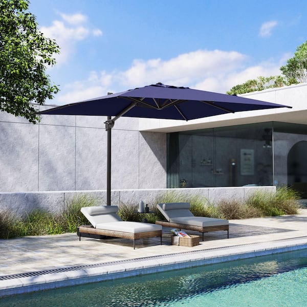 9 ft. x 10.5 ft. Rectangular Outdoor Aluminum Offset Cantilever 360° Rotation Patio Umbrella in Navy Blue with No Base