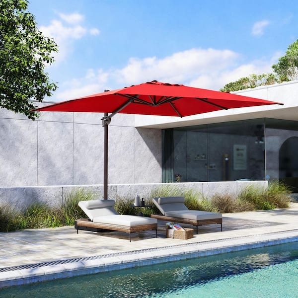 9 ft. x 10.5 ft. Rectangular Outdoor Aluminum Offset Cantilever 360° Rotation Patio Umbrella in Red with No Base
