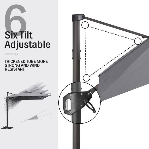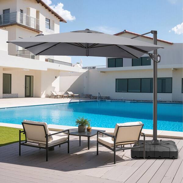 9 ft. x 11.5 ft. Aluminum Cantilever Offset Rotational Adjustable Tilt Patio Umbrella in Gray with Stand Fillable Base