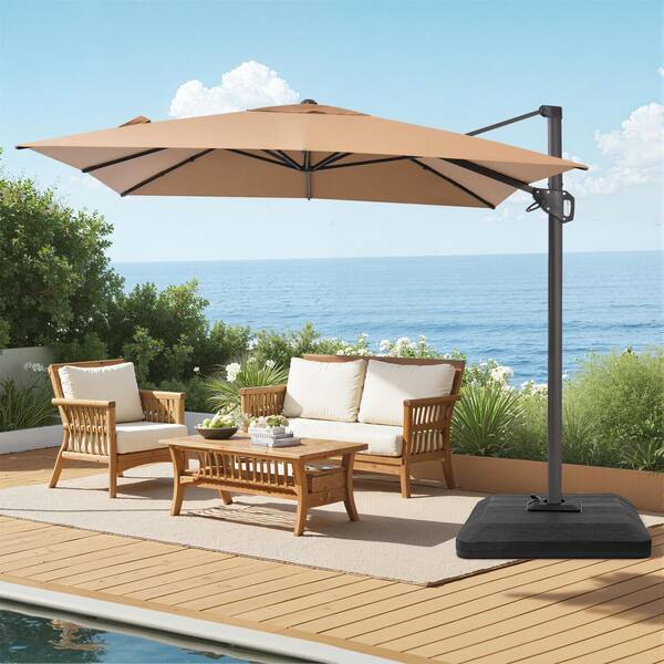 9 ft. x 11.5 ft. Aluminum Cantilever Swivel Tilt Patio Umbrella in Tan with 4-piece Base