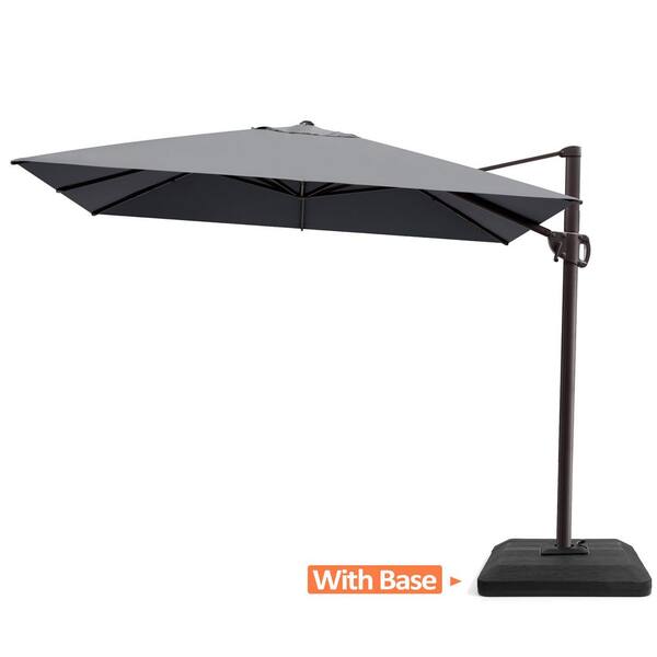 9 ft. x 11.5 ft. Offset Cantilever 360° Rotation Crank Tilt Patio Umbrella in Gray with Fillable Base Weights