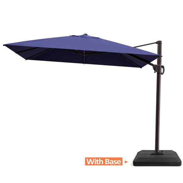 9 ft. x 11.5 ft. Offset Cantilever 360° Rotation Crank Tilt Patio Umbrella in Navy with Fillable Base Weights