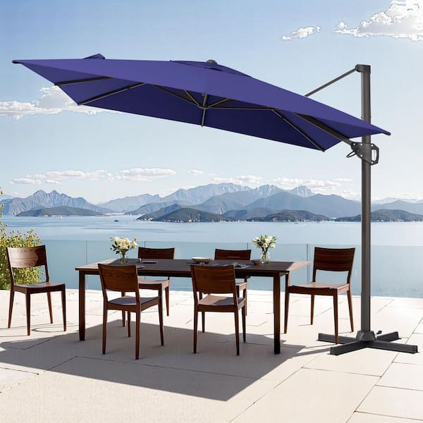 9 ft. x 11 ft. Aluminum Cantilever Offset 360° Swivel Adjustable Canopy Tilt Patio Umbrella in Navy Blue, No Base
