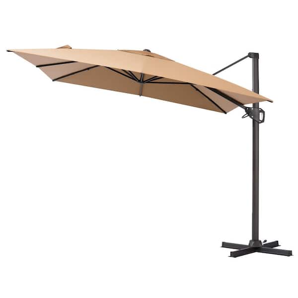 9 ft. x 11 ft. Aluminum Cantilever Offset 360° Swivel Adjustable Canopy Tilt Patio Umbrella in Tan, No Base