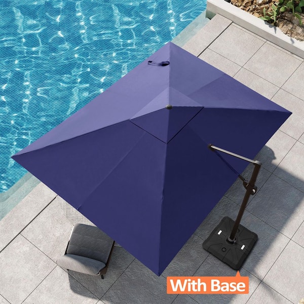 9 ft. x 12 ft. Aluminum Cantilever Patio Umbrella Swivel Offset 360° Rotation Umbrella in Navy Blue with Stand