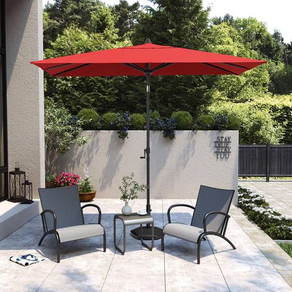9 ft. x 5 ft. Rectangular Market Crank and Tilt Patio Umbrella in Red