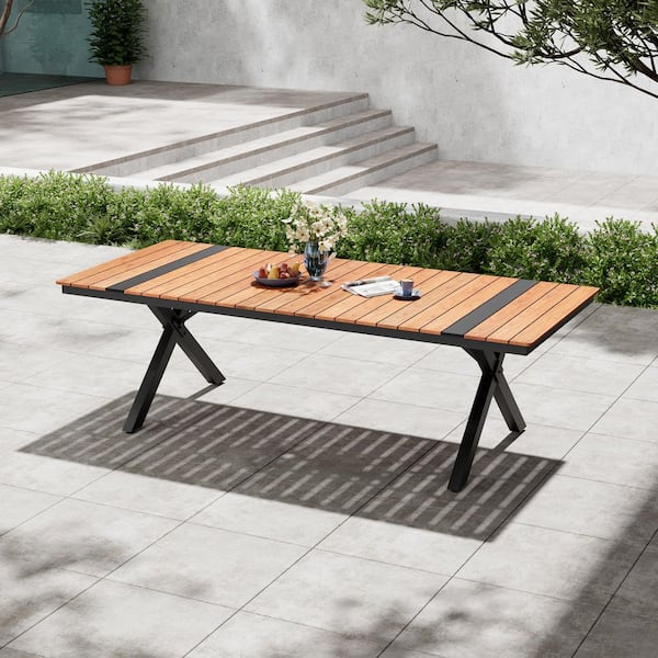 94.3 in. Brown Aluminum Rectangular Outdoor Dining Table with 1.6 in. Umbrella Hole