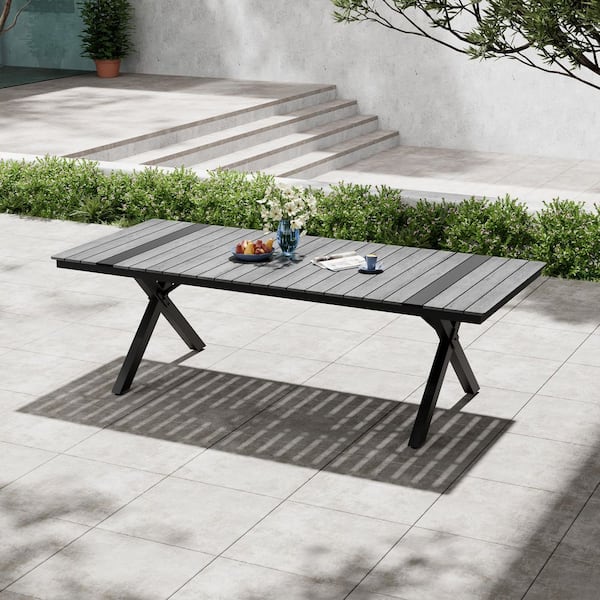94.3 in. Gray Aluminum Rectangular Outdoor Dining Table with 1.6 in. Umbrella Hole