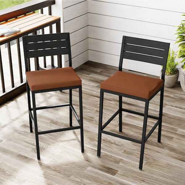 All Weather Wicker Outdoor Bar Stool with Heavy Duty Aluminum Frame(2-Pack)