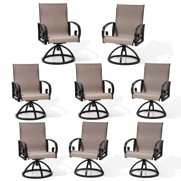 Black Finish Swivel Sunbrella Textilene Sling Steel Aluminum Frame Outdoor Dining Chair in Augustine Ashe Set of 8