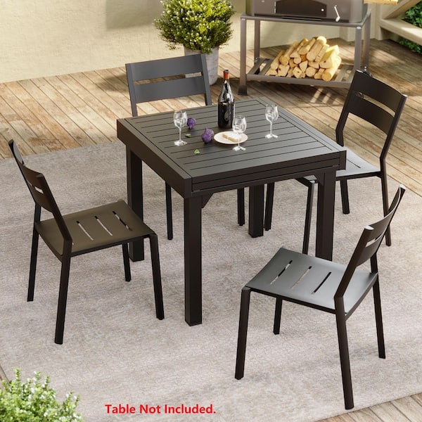 Black Stackable Armless All-Weather Patio Aluminum Outdoor Dining Chairs Set of 4