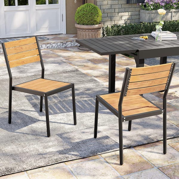 Black Stackable Armless Aluminum Patio Outdoor Dining Chair in Brown (Set of 2)