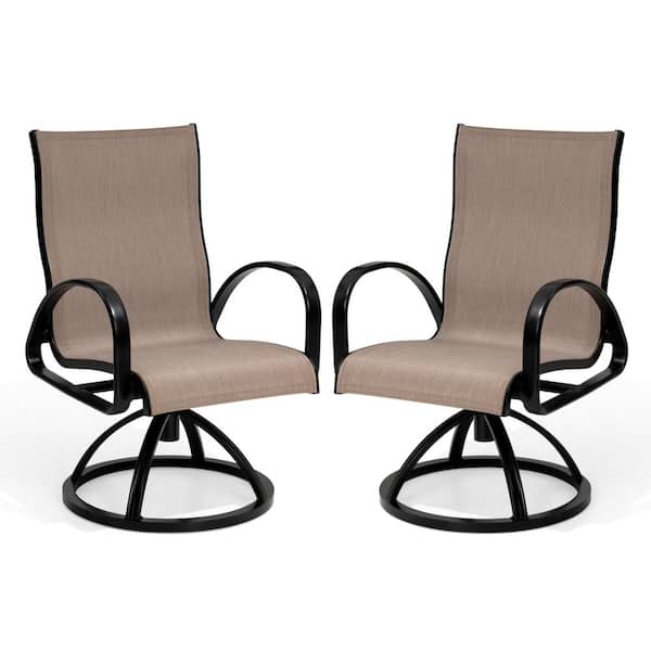 Black Swivel Aluminum Sunbrella Textilene Mesh Fabric Outdoor Dining Chair in Augustine Ashe (Set of 2)