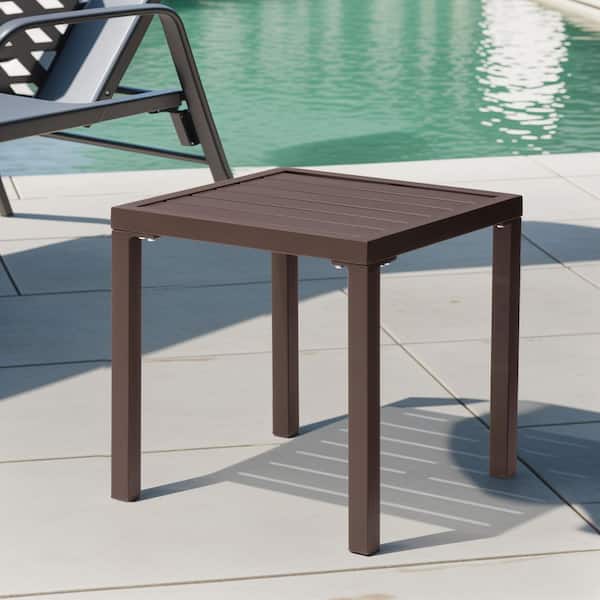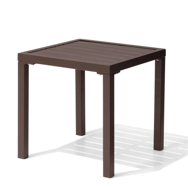 Brown 15.7 in. Square Metal Outdoor Side Small Table 1-Piece